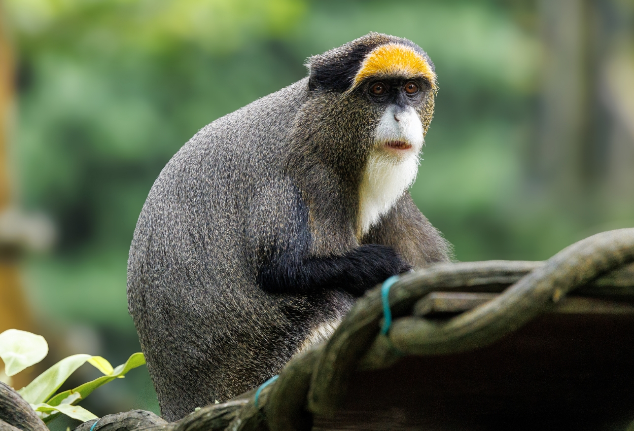 De Brazza's Monkey is a distinctive Old World monkey found in central Africa, recognized by its white beard and orange crown.