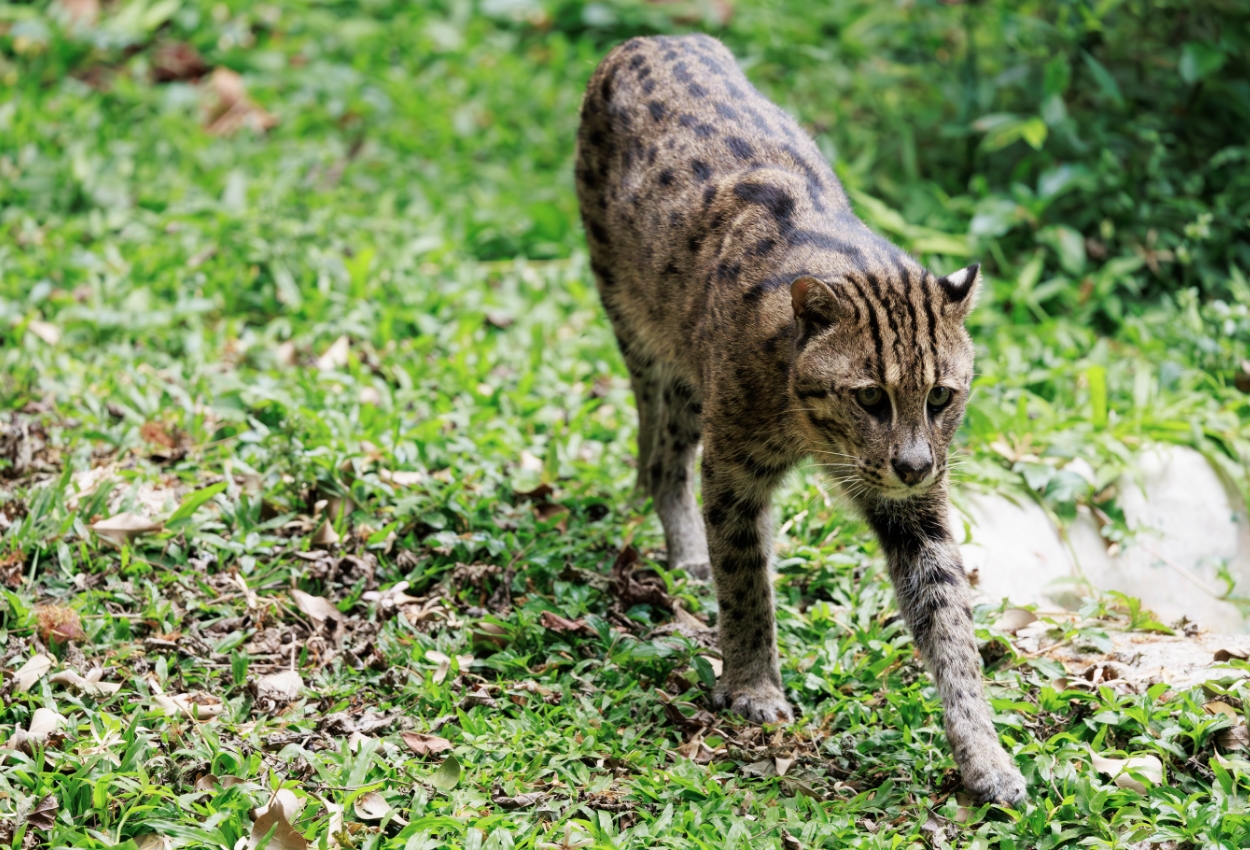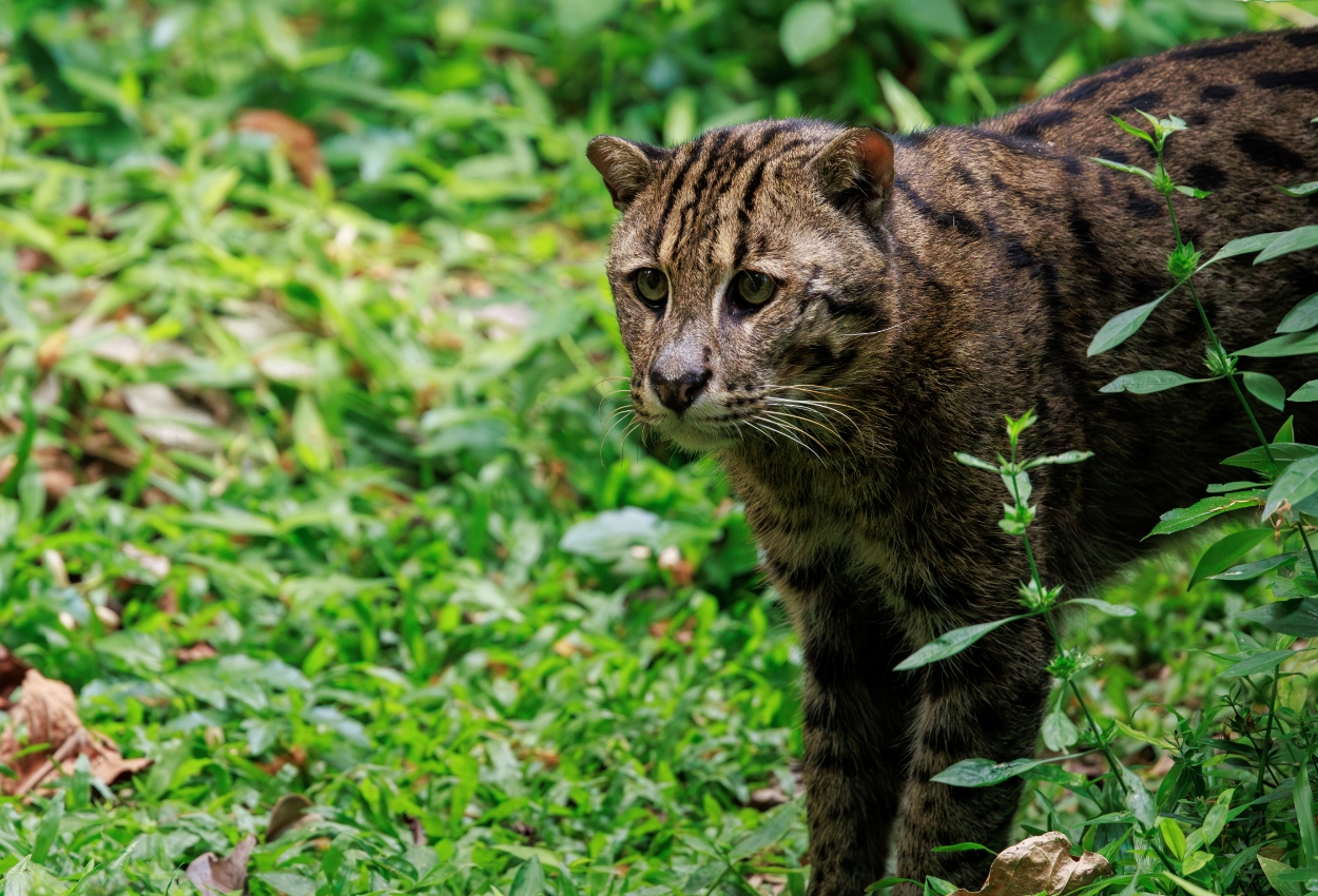 Fishing cats have partially webbed feet, making them strong swimmers and unique among wild cats.