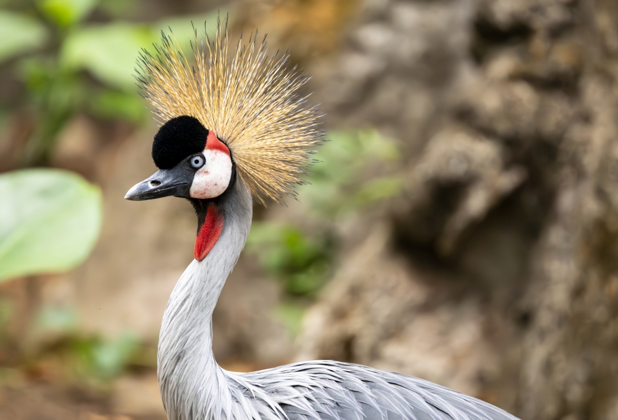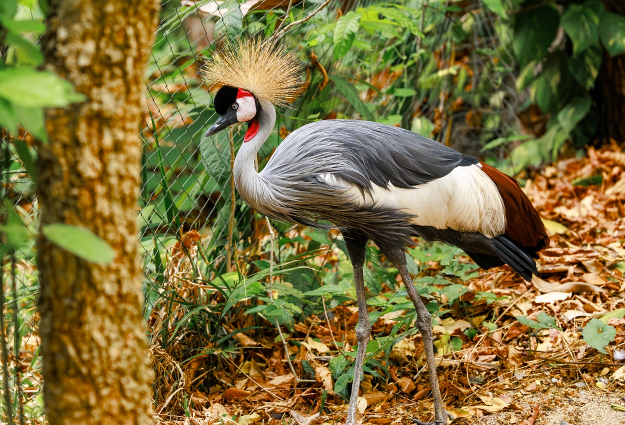 The Grey-crowned Crane is a tall, elegant crane native to eastern and southern Africa. It is easily identified by the golden, crown-like feathers on its head. These cranes frequent wetlands and grasslands and are renowned for elaborate courtship dances.