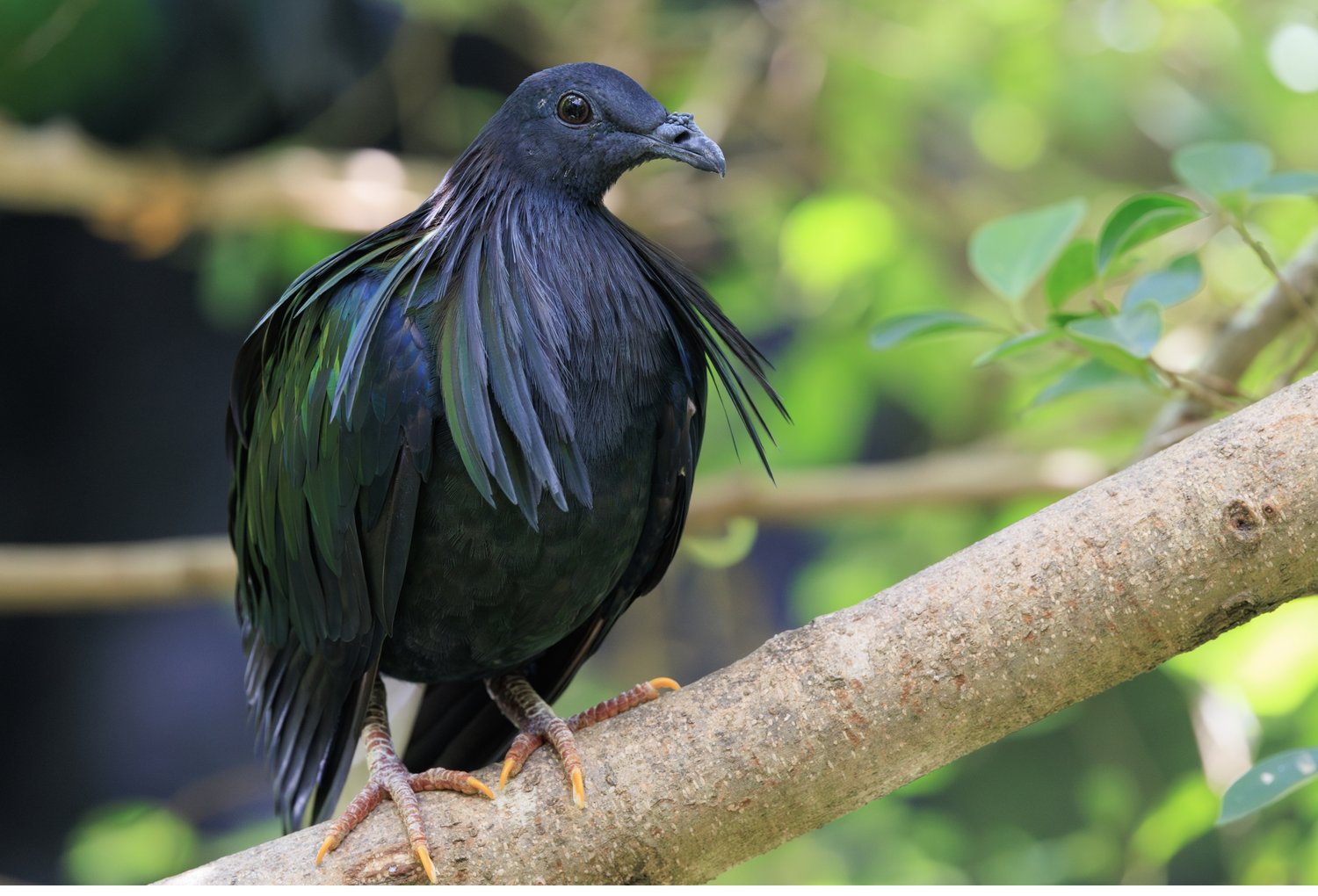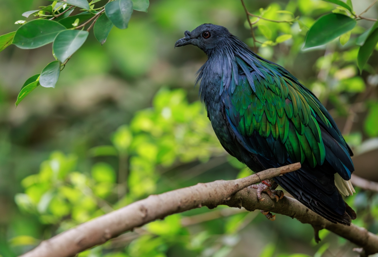 The Nicobar Pigeon is a striking iridescent pigeon native to small islands and coastal regions of Southeast Asia and the Pacific.