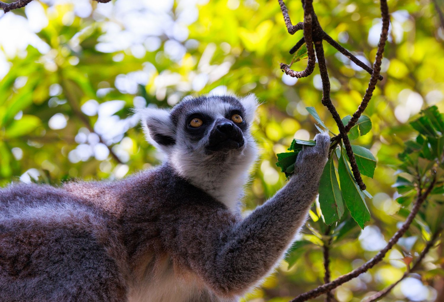 The Ring‑tailed Lemur (Lemur catta) is a charismatic primate endemic to Madagascar, instantly recognisable by its long black‑and‑white ringed tail. Highly social and diurnal, they live in large troops and spend more time on the ground than most other lemur species. They communicate using scent marking and vocalisations and are famous for their sun‑bathing posture, sitting upright to warm their bodies.