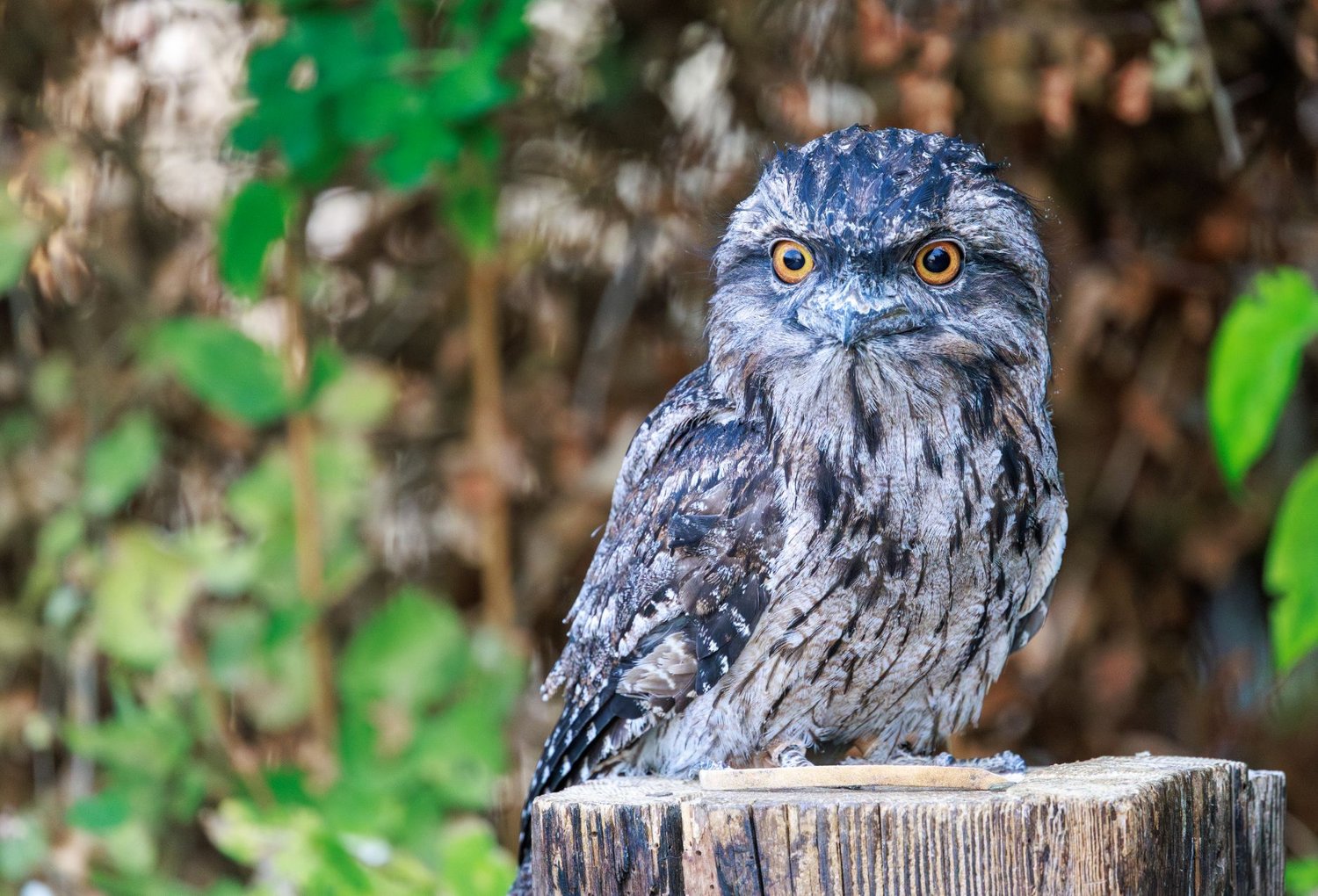 The Tawny Frogmouth is a nocturnal bird native to Australia and nearby regions, known for its excellent camouflage and frog-like wide bill.